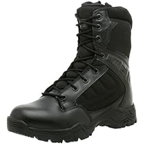 Men's Magnum 8" Side Zip Response II Boots pack the features without blowing the budget! Here's a top-quality duty Boot any working guy can afford. The Magnum 8" Side Zip Response II packs all the full-on duty boot construction Magnum is famous for including cushioning high traction outsole lightweight-yet-strong leather and nylon upper... even a fast-dressing side zip so you can answer the call in record time. Details: Quality action leather upper with 900 denier nylon underlay for lightweight durability; Self-repairing coil-style side zips for fast dressing; High-traction slip-resistant outsole; Comfort contoured removable sockliner; Supportive steel shank; Moisture-wicking lining; Gusseted tongue keeps debris out; Bluecher lace system goes further dow on the toe for more stability... 8 eyelets; Each approx. 8"h 24 1/4 oz.; Made to stand up to the most demanding situations without breaking the bank. State Size. Medium width. Order Today! Men's Hi-Tec Magnum 8" Side Zip Response II Boots